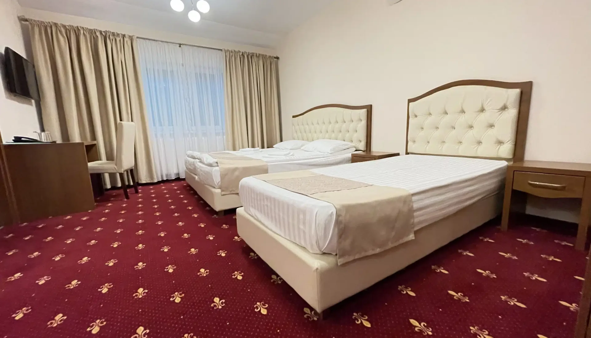 Camera tripla poate gazdui de la una pana la trei persoane. Fiecare camera tripla are baie proprie, aer conditionat, incalzire centralizata, mini-frigider, plasa de tantari la geamuri, mochetata. Camera dispune de 3 paturi twin (de o persoana), doua aranjate unul langa altul iar unul separat.